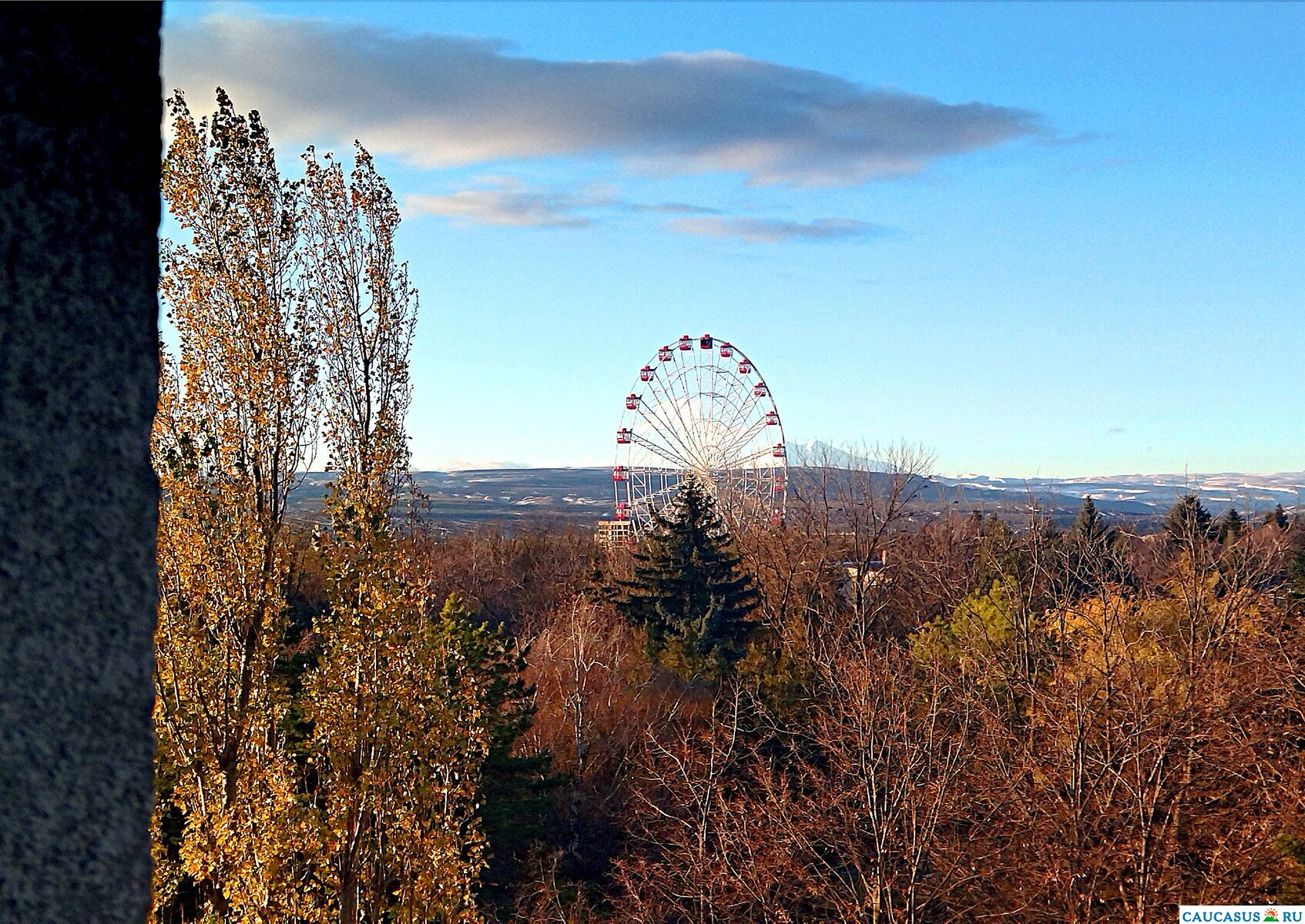 Ессентуки, вид на Эльбрус сквозь колесо обозрения.