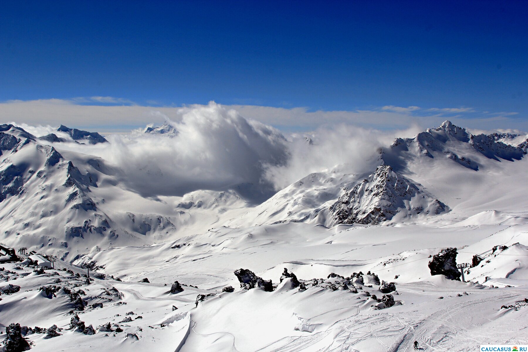Эльбрус, снежный склон, канатная дорога